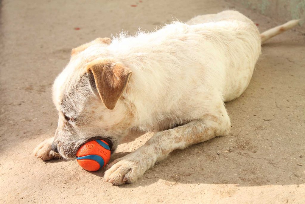 Abgesehen von leichter Unterernährung war der Racker in einem guten Zustand. Er war sehr respektvoll zu allen Mitbewohnern im Tierheim. Auch weil er einfach überfordert damit war plötzlich so viel Trubel um sich zu haben. Das hielt jedoch nicht lange an. Er wurde schnell selbstsicher und wesentlich mutiger. Inzwischen ist er teilweise sehr frech zu den restlichen Hunden und sein Pfleger Salva kann ihn dabei nur schwer im Auge behalten, da es im Tierheim sehr viel zu tun gibt. Er bräuchte eine Person die in solchen Situationen sofort eingreifen kann, das können wir so leider nicht umsetzen. Er ist weder aggressiv noch böse, er ist nur ein wenig eifersüchtig und möchte die gesamte Zuneigung oder das Spielzeug für sich beanspruchen. Das zeigt sich beispielsweise im anbellen der Hunde die man gerade streichelt. Wenn Fúyur gerade selbst mit einem Besucher kuschelt, knurrt er jeden Artgenossen an der ihm dabei zu nahe kommt an. Wenn Salva Spielzeug für die Hunde austeilt, möchte der junge Rüde auch die Sachen der Anderen. Er greift sie zwar nicht an, sondern knurrt nur, aber dass es nicht zu ernsthaften Auseinandersetzungen kommt, liegt nur daran, dass sich keiner provozieren lässt. Wir verstehen sein Verhalten, da er noch nie etwas nur für sich hatte und im Tierheim nicht genug Zuwendung bekommen kann. Es ist für ihn so wertvoll, dass er nicht teilen möchte. In einem eigenen Zuhause könnte an diesem Verhalten viel besser gearbeitet werden, vor allem solange er noch jung ist.